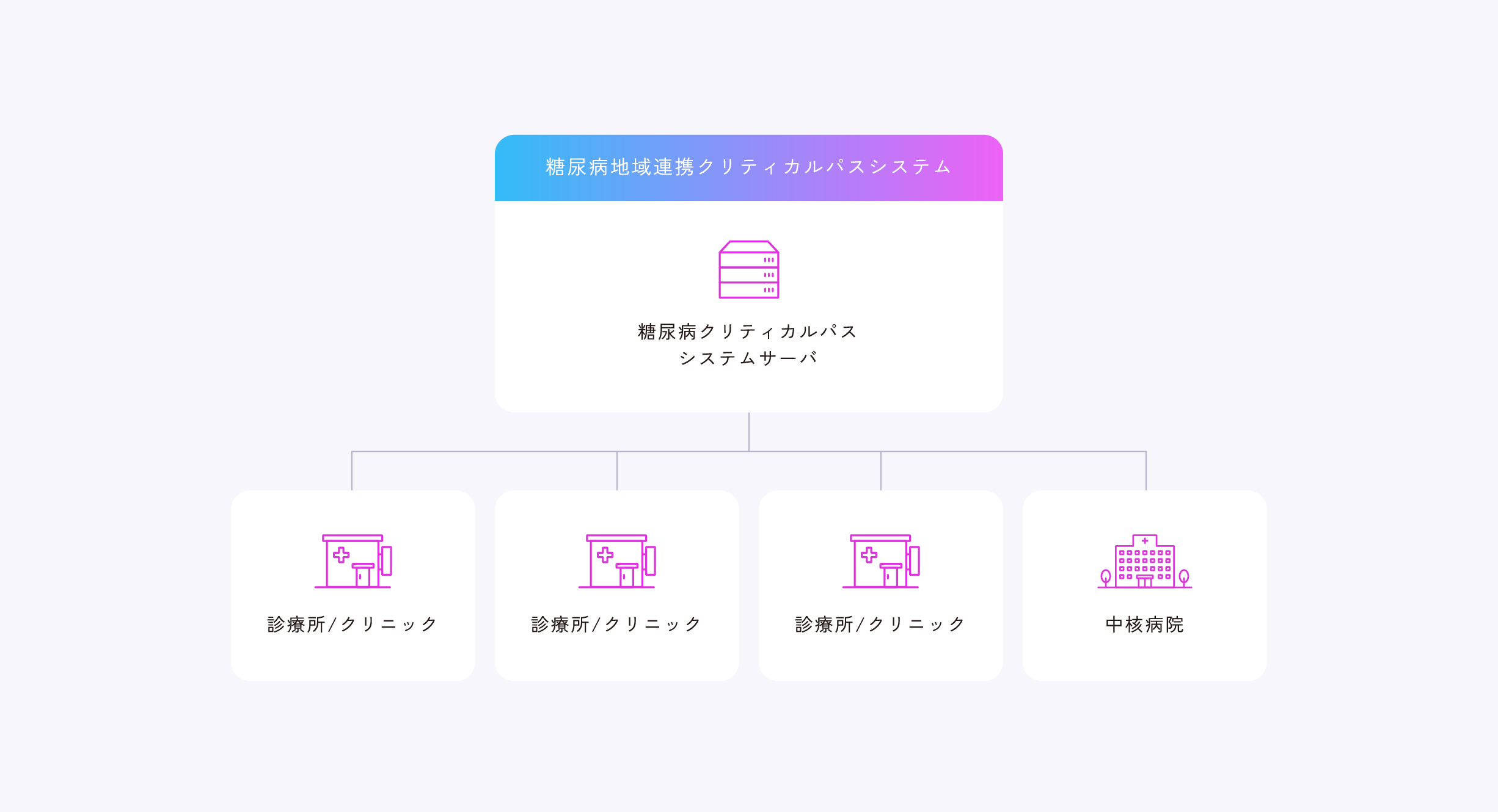 糖尿病治療における地域連携を支援する「クリティカルパスシステムネットワーク」を開発しました。病院、診療所、薬局、訪問看護などの多職種間で患者情報を共有し、治療計画の進捗を一元管理することで、地域全体での質の高い継続的な糖尿病治療を実現。これにより、診療の効率化と患者の安心につながる新たな医療連携のモデルを提供します。